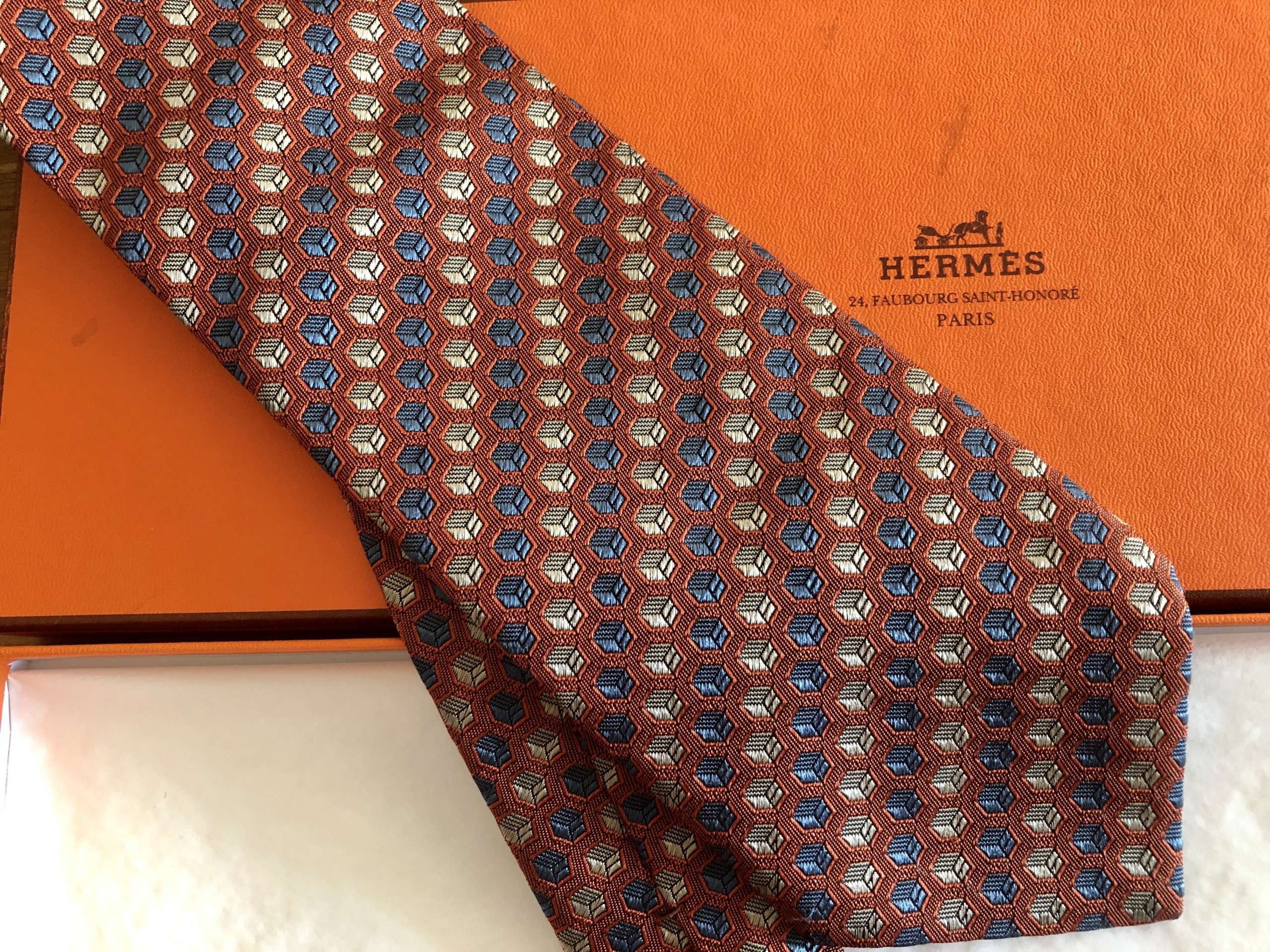 Silk tie Hermès-Paris “Blue & Beige Cubes”
